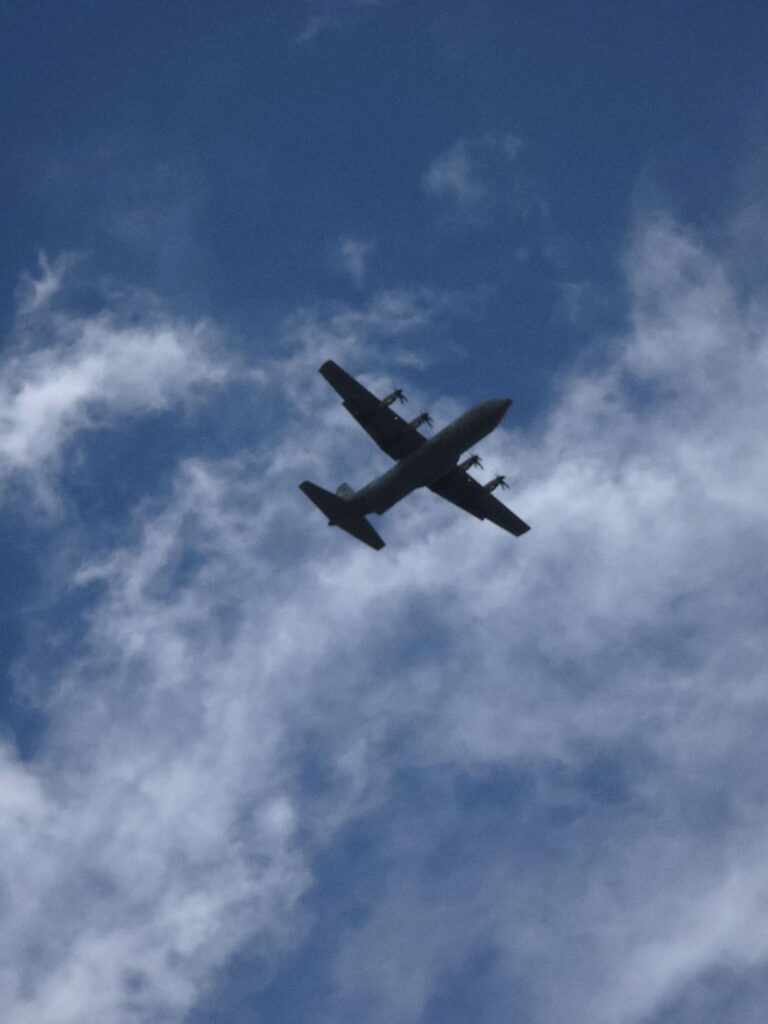 というわけで、空挺隊員を降下させるはずだった在日米空軍第374空輸航空団C-130J輸送機は、低速で上空を飛行しました。